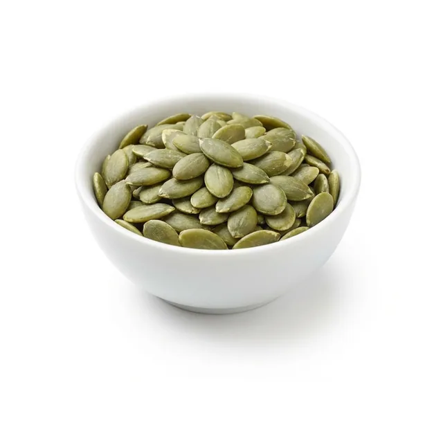 Eine trockene Pfanne erhitzen und Kürbiskerne darin unter Rütteln rösten, bis sie duften und leicht Farbe annehmen. Sofort aus der Pfanne nehmen, damit sie nicht nachbräunen und bitter werden.